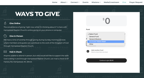 Beyond our local boundaries, Hampstead Baptist Church extends our reach to neighboring communities and regions, seeking to make a tangible difference in the lives of those facing hardship and adversity. Whether through disaster relief efforts, educational programs, or healthcare initiatives, we stand in solidarity with our regional neighbors, offering assistance and support in Jesus' Name.